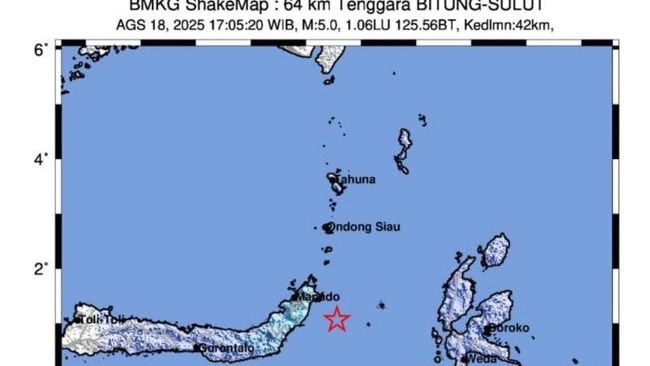 Gempa M 5,2 Guncang Bitung, BMKG Akibat Subduksi Lempeng Laut Maluku