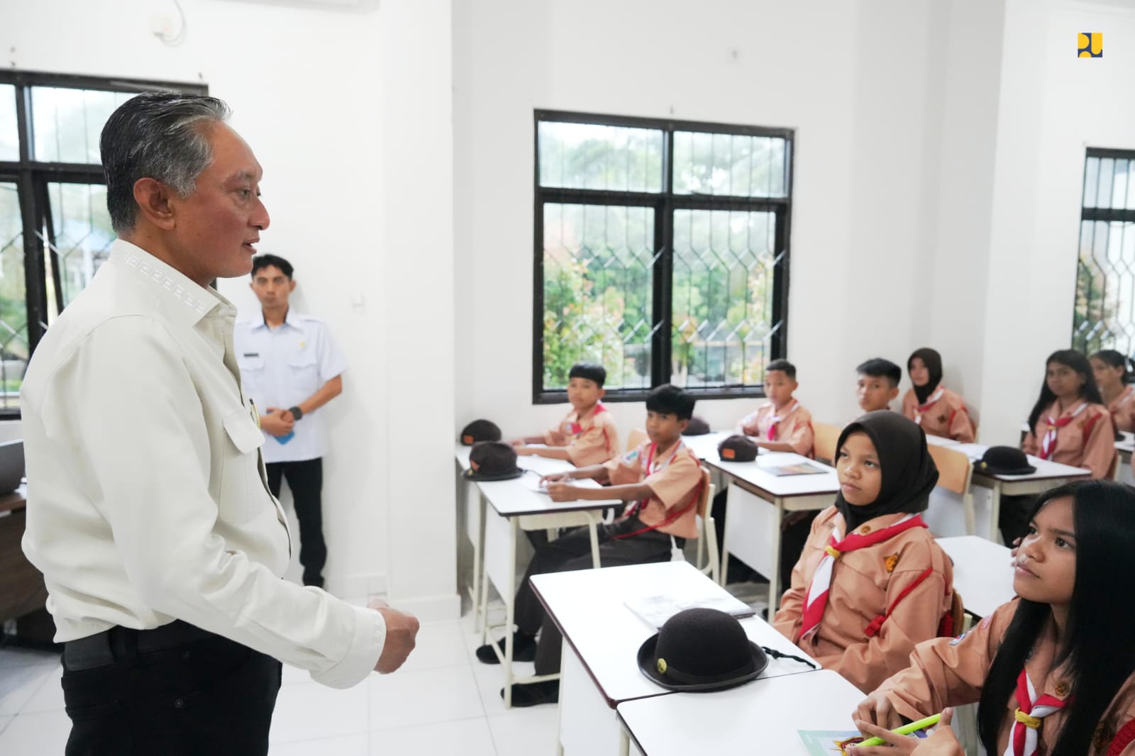 Tak hanya meninjau bangunan, Menteri Dody juga meluangkan waktu berbincang dengan para guru mengenai tantangan sehari-hari mereka. Dari cerita para pendidik, ia mengetahui bahwa para siswa begitu antusias bersekolah, bahkan ketika hujan turun sekalipun.
