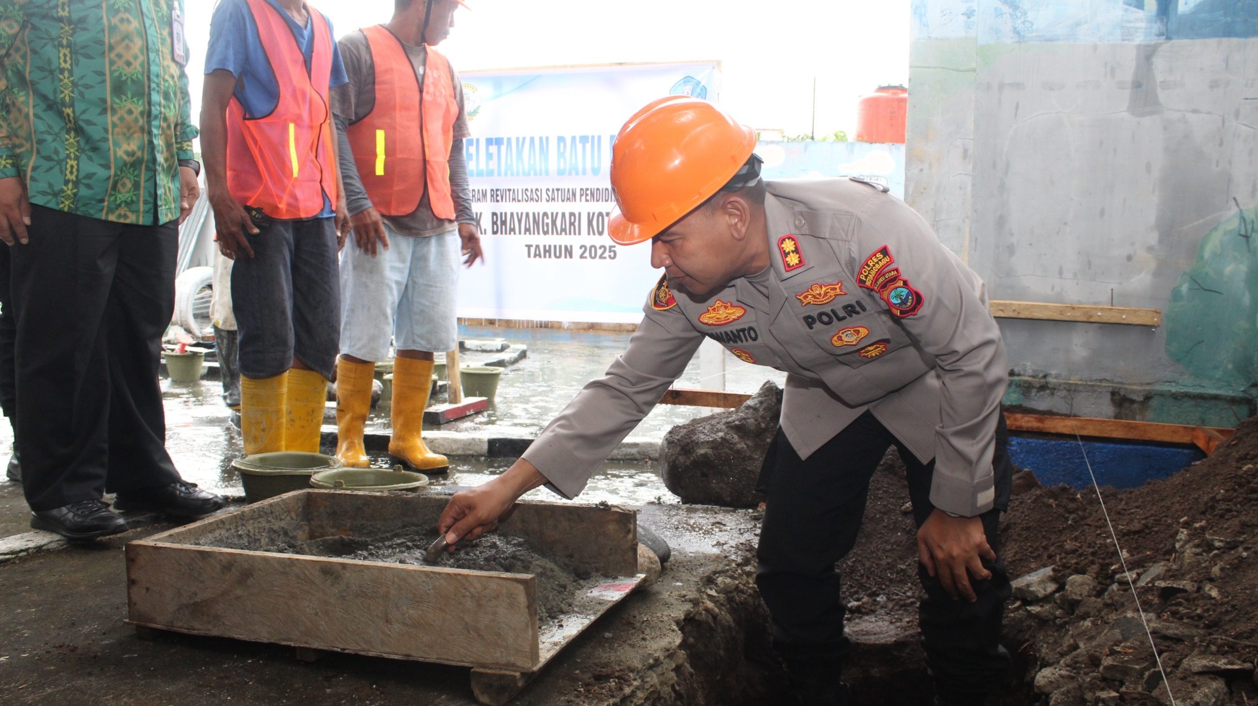 News Buroko– Komitmen jajaran Kepolisian Resort (Polres) Kotamobagu dalam dunia pendidikan kembali ditunjukkan dengan aksi nyata. Kali ini, melalui program revitalisasi Taman Kanak-Kanak (TK) Bhayangkari Kotamobagu yang ditandai dengan prosesi peletakan batu pertama secara simbolis oleh Kapolres Kotamobagu, AKBP Irwanto, SIK, MH, pada hari ini.